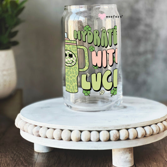 Hydrated with Luck St. Patrick's Day 16oz Libbey Glass Can UV DTF or Sublimation Cup Wrap - Decal Transfer