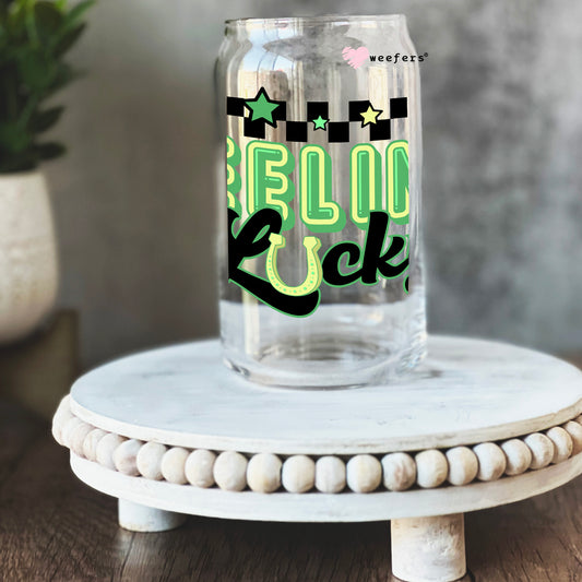 Feeling Lucky Checkers St. Patrick's Day 16oz Libbey Glass Can UV DTF or Sublimation Cup Wrap - Decal Transfer
