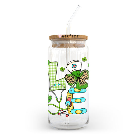 Love Nurse St Patrick's Day 20oz Libbey Glass Can UV DTF or Sublimation Wrap - Decal
