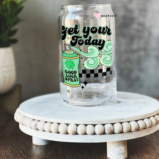 Lucky Spray St. Patrick's Day 16oz Libbey Glass Can UV DTF or Sublimation Cup Wrap - Decal Transfer
