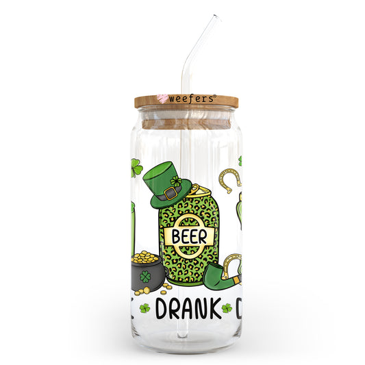 Drink Drank Drunk St Patrick's Day 20oz Libbey Glass Can UV DTF or Sublimation Wrap - Decal