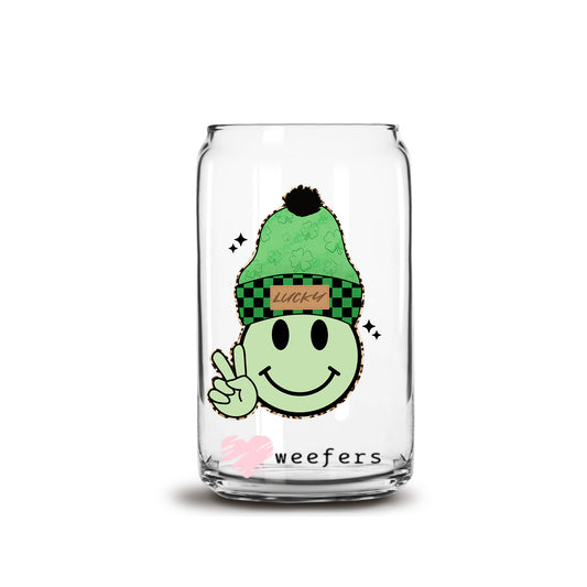 Lucky Smile Face St. Patrick's Day 20oz Libbey Glass Can UV DTF or Sublimation Wrap - Decal Transfer