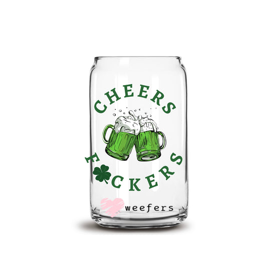 Cheers F'ers St Patrick's Day Green 16oz Libbey Glass Can UV DTF or Sublimation Cup Wrap - Decal Transfer