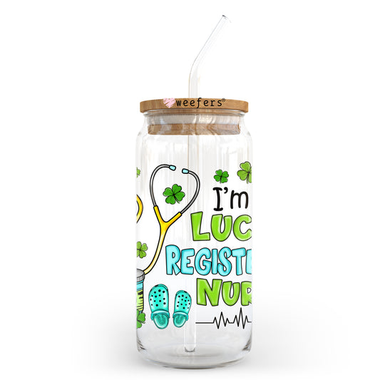 I'm a Lucky Registered Nurse St Patrick's Day 20oz Libbey Glass Can UV DTF or Sublimation Wrap - Decal