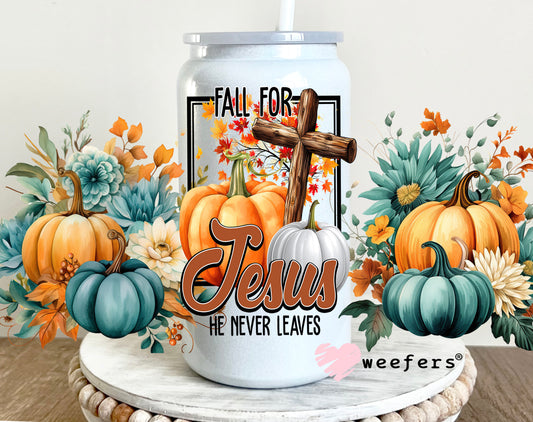 Fall For Jesus He Never Leaves UV DTF Cup Wrap