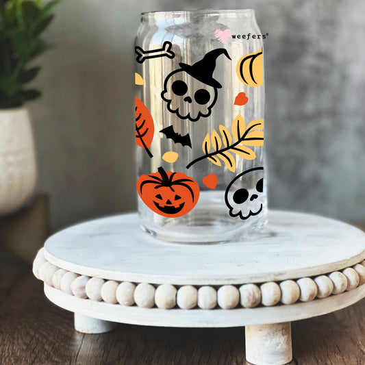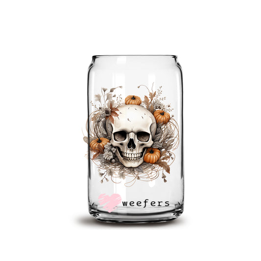 Pumpkins and Skull Fall 16oz Libbey Glass Can UV DTF or Sublimation Wrap - Decal