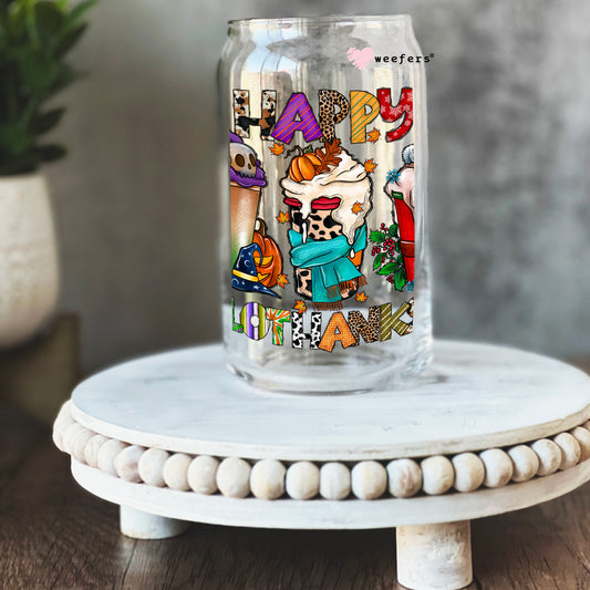 Happy HalloThankMas 16oz Libbey Glass Can UV DTF or Sublimation Wrap - Decal