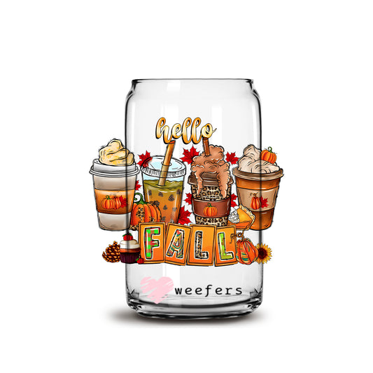 Hello Fall Coffee 16oz Libbey Glass Can UV DTF or Sublimation Wrap - Decal