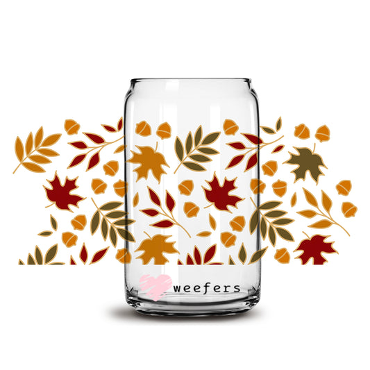 Fall Autumn Leaves16oz Libbey Glass Can UV DTF or Sublimation Wrap - Decal