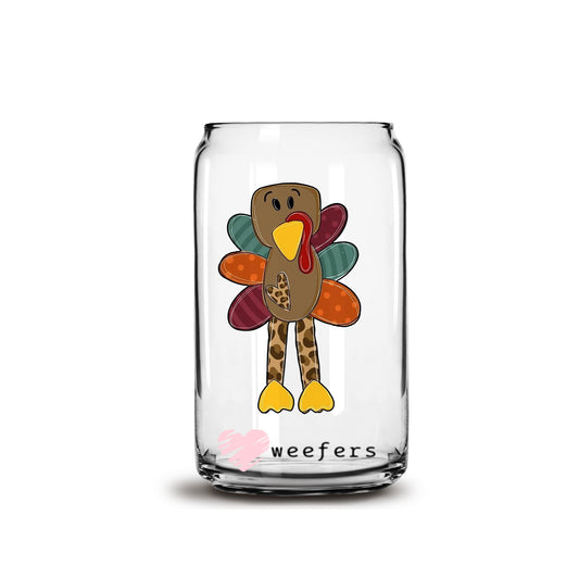 Cute Turkey 16oz Libbey Glass Can UV DTF or Sublimation Wrap - Decal