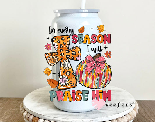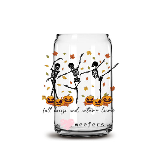Fall Breeze and Autumn Leaves 16oz Libbey Glass Can UV DTF or Sublimation Wrap - Decal
