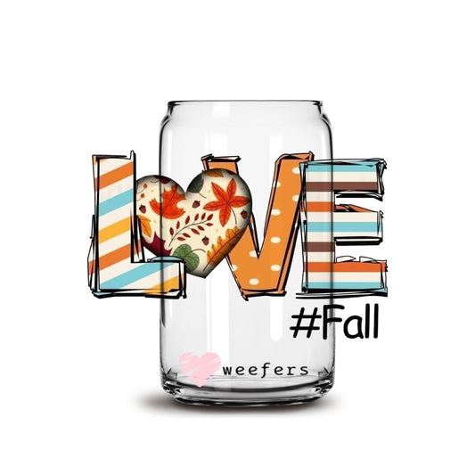 Love #Fall 16oz Libbey Glass Can UV DTF or Sublimation Wrap - Decal