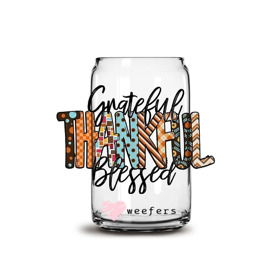Grateful Thankful Blessed 16oz Libbey Glass Can UV DTF or Sublimation Wrap - Decal