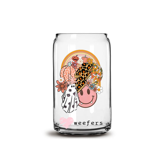 Retro Smile Leopard Ghose Halloween 16oz Libbey Glass Can UV DTF or Sublimation Wrap - Decal