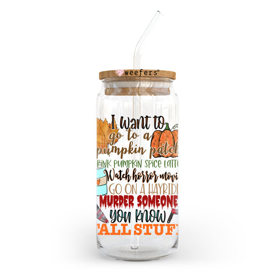 I Want To go to a Pumpkin Patch Fall 20oz Libbey Glass Can, 34oz Hip Sip, 40oz Tumbler UV DTF or Sublimation Decal Transfer