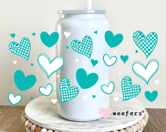 Teal Hearts UV DTF Cup Wrap