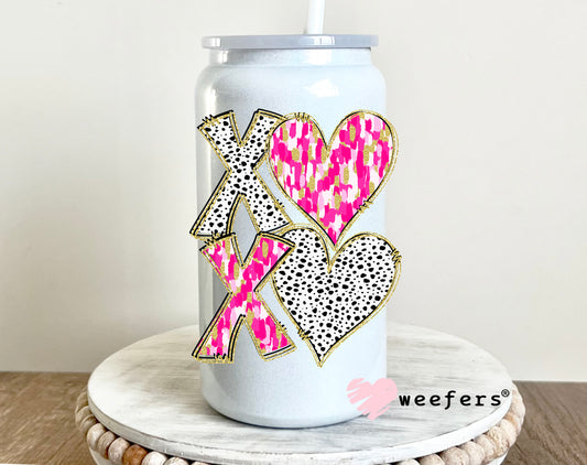 XOXO Pink Black Glitter Polka Dots UV DTF Decal