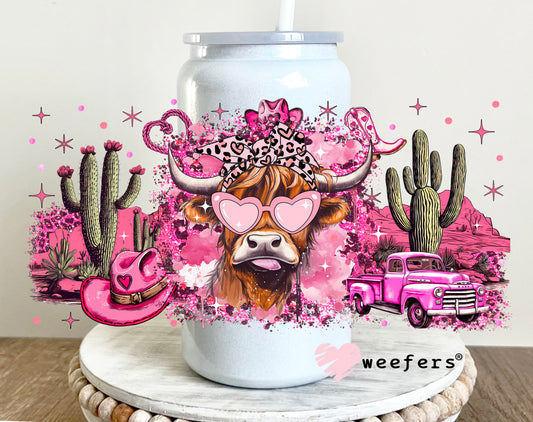 Bougie Pink Highlander Cow UV DTF Cup Wrap