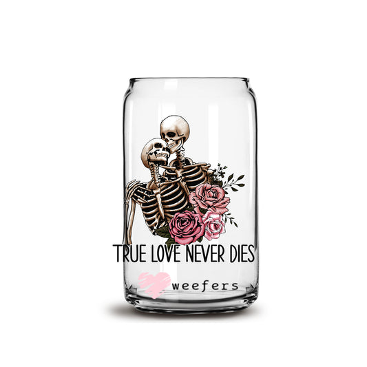 True Love Never Dies Valentine's Day 16oz Libbey Glass Can UV DTF or Sublimation Cup Wrap - Decal Transfer