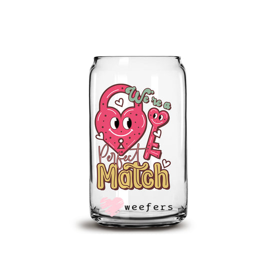 We're a Perfect Match Valentine's Day 16oz Libbey Glass Can UV DTF or Sublimation Cup Wrap - Decal Transfer