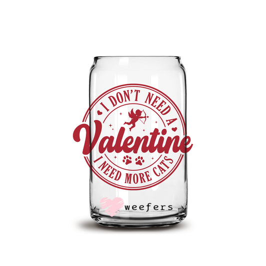 I don't need a Valentine I Need more Cats 16oz Libbey Glass Can UV DTF or Sublimation Cup Wrap - Decal Transfer