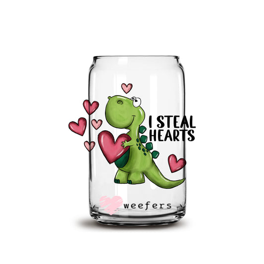 I Steal Hearts Dragon 16oz Libbey Glass Can UV DTF or Sublimation Cup Wrap - Decal Transfer