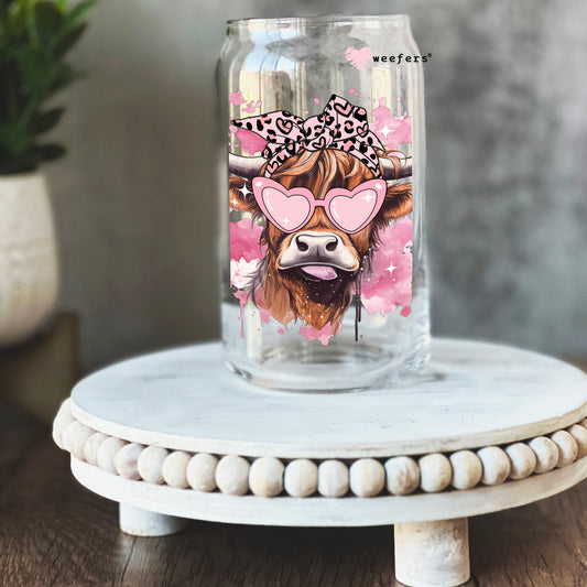 Bougie Pink Highlander Cow 16oz Libbey Glass Can UV DTF or Sublimation Cup Wrap - Decal Transfer