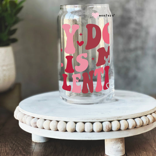 My Dog is My Valentine Retro 16oz Libbey Glass Can UV DTF or Sublimation Cup Wrap - Decal Transfer