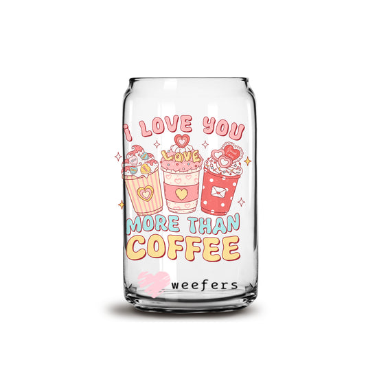 I love you more than coffee Valentine's Day 16oz Libbey Glass Can UV DTF or Sublimation Cup Wrap - Decal Transfer