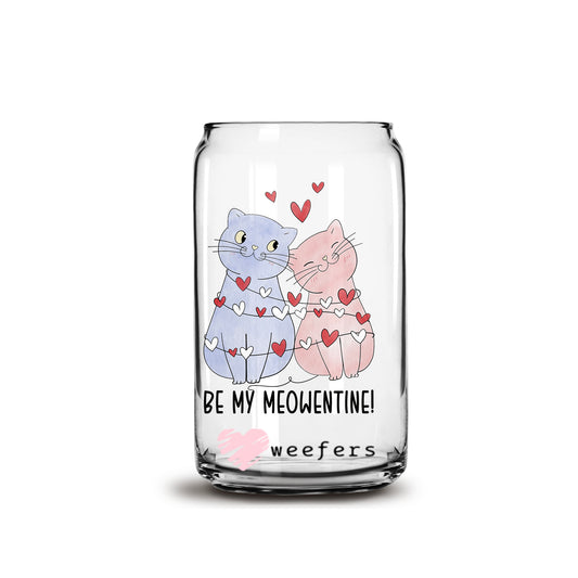 Be My Meowtine Cat Valentine 16oz Libbey Glass Can UV DTF or Sublimation Cup Wrap - Decal Transfer