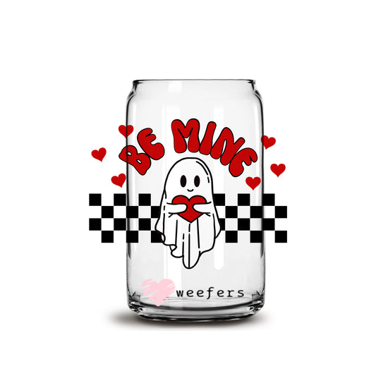 Be Mine Ghost Valentine's Day 16oz Libbey Glass Can UV DTF or Sublimation Cup Wrap - Decal Transfer