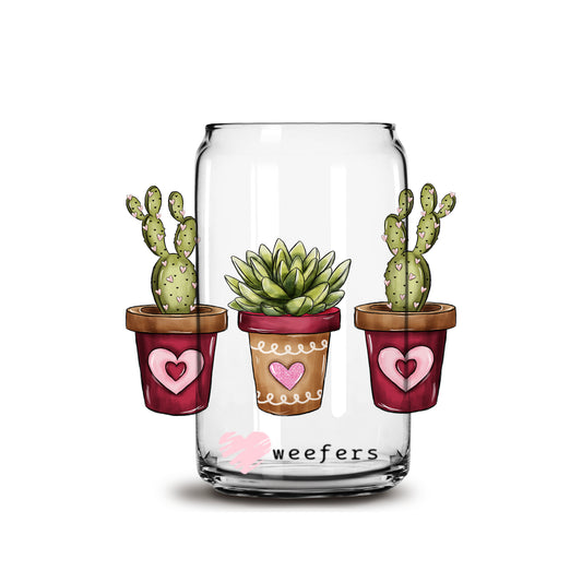 Valentine's Succulent 16oz Libbey Glass Can UV DTF or Sublimation Cup Wrap - Decal Transfer