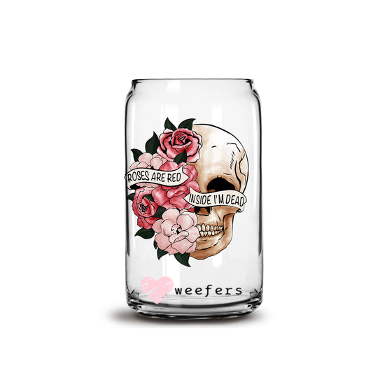 Roses are Red I'm Dead Inside Valentine's Day 16oz Libbey Glass Can UV DTF or Sublimation Cup Wrap - Decal Transfer