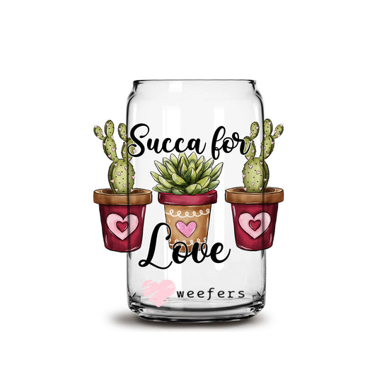 Succa for Love Valentine's Day 16oz Libbey Glass Can UV DTF or Sublimation Cup Wrap - Decal Transfer