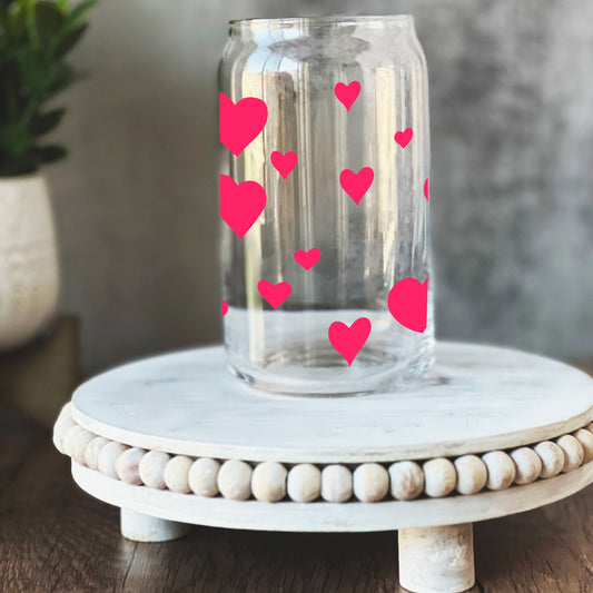 Valentine Red Hearts Libbey Glass Can Wrap UV DTF Sublimation Transfers