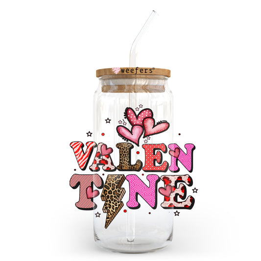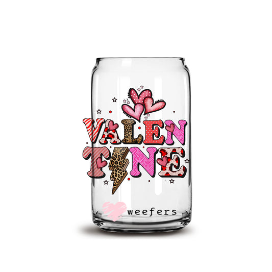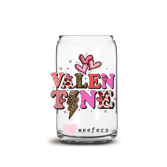 Valentine Lightening Bolt Western 16oz Libbey Glass Can UV DTF or Sublimation Cup Wrap - Decal Transfer