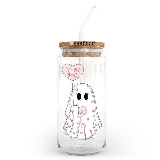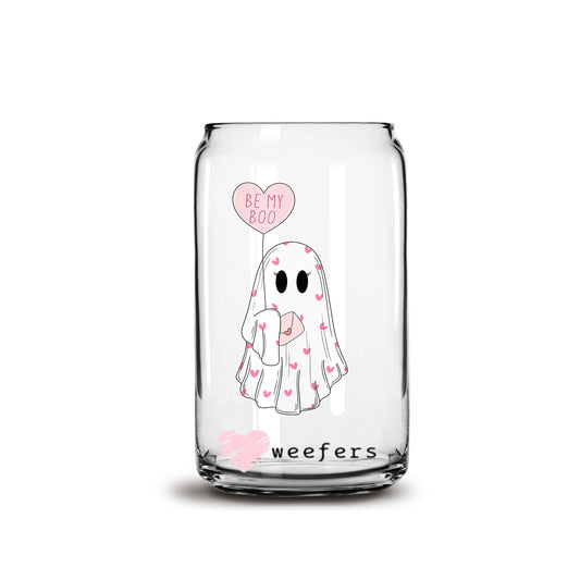 Be my Boo Valentine's Day Ghost 16oz Libbey Glass Can UV DTF or Sublimation Cup Wrap - Decal Transfer