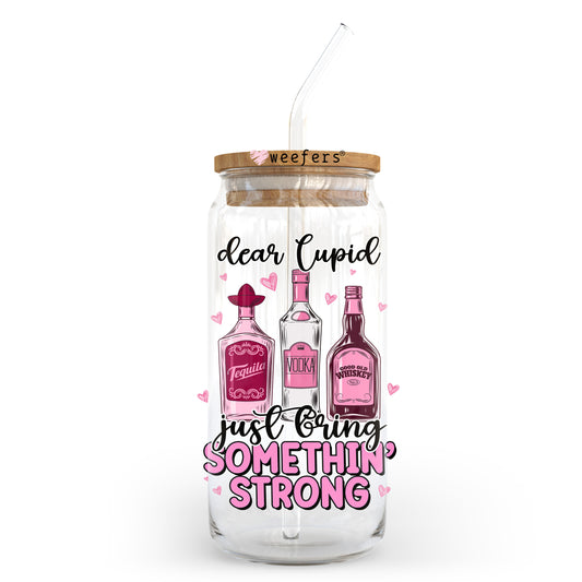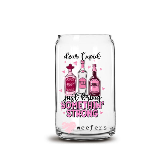 Dear Cupid Bring Just Bring Me Something Strong 16oz Libbey Glass Can UV DTF or Sublimation Cup Wrap - Decal Transfer