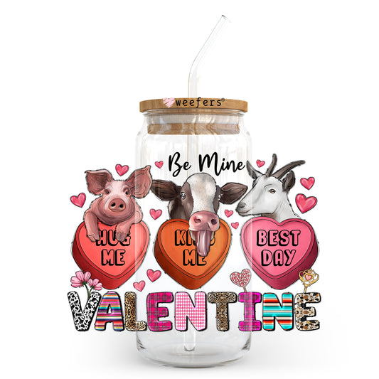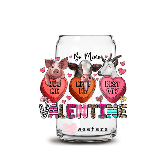 Be My Valentine Cows 16oz Libbey Glass Can UV DTF or Sublimation Cup Wrap - Decal Transfer