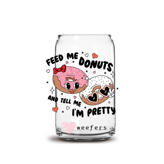 Feed Me Donuts and Tell Me I'm Pretty 16oz Libbey Glass Can UV DTF or Sublimation Cup Wrap - Decal Transfer