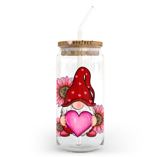 Heart Gnome Valentine's Day 20oz Libbey Glass Can UV DTF or Sublimation Wrap - Decal Transfer