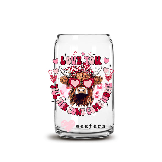 Love you till the Cows come Home Valentine's Day Highlander 16oz Libbey Glass Can UV DTF or Sublimation Cup Wrap - Decal Transfer