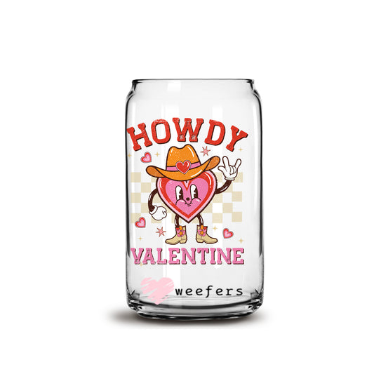 Howdy Valentine Valentine's Day 16oz Libbey Glass Can UV DTF or Sublimation Cup Wrap - Decal Transfer