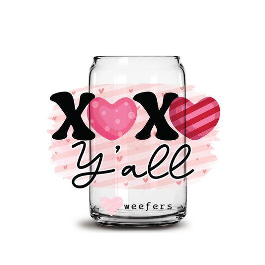 XOXO Y'all Valentine's Day 16oz Libbey Glass Can UV DTF or Sublimation Cup Wrap - Decal Transfer