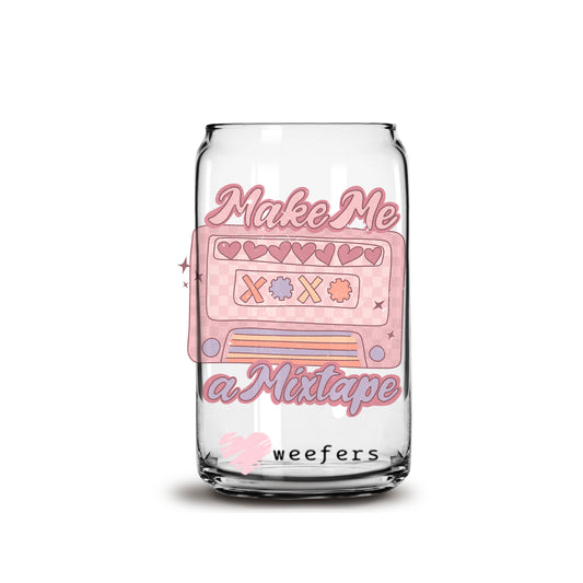 Make Me a Mixed Tape Valentine's Day 16oz Libbey Glass Can UV DTF or Sublimation Cup Wrap - Decal Transfer