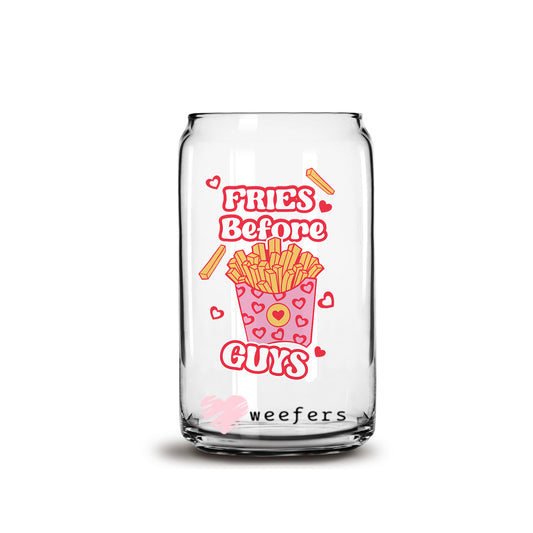 Fries before Guys Valentine's Day 16oz Libbey Glass Can UV DTF or Sublimation Cup Wrap - Decal Transfer
