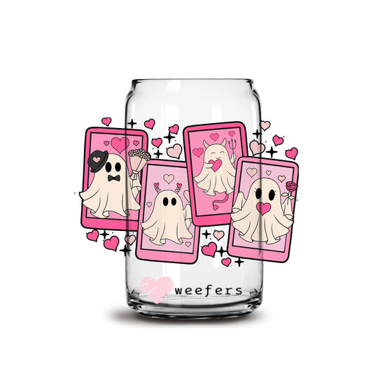 Valentine Ghost Cards 16oz Libbey Glass Can UV DTF or Sublimation Cup Wrap - Decal Transfer