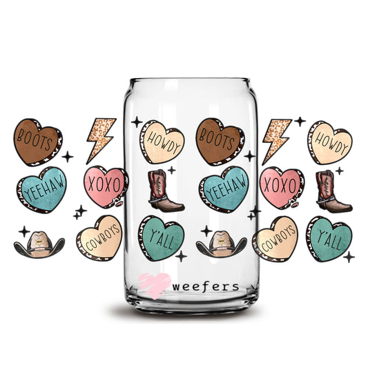 Western Conversation Hearts Valentine's Day 16oz Libbey Glass Can UV DTF or Sublimation Cup Wrap - Decal Transfer