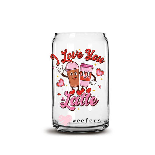 I Love You a Latte Valentine's Day 16oz Libbey Glass Can UV DTF or Sublimation Cup Wrap - Decal Transfer