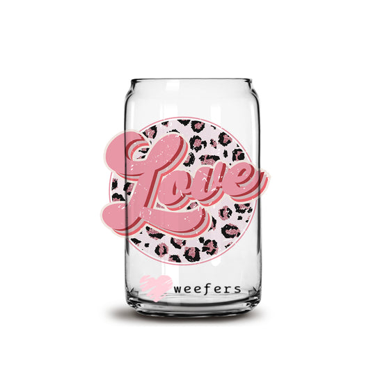 Love Cheetah Valentine's Day 16oz Libbey Glass Can UV DTF or Sublimation Cup Wrap - Decal Transfer